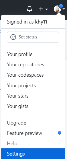 맨 아래 위치한 Developer settings -> Personal access tokens > Generate new token