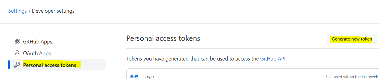 번외 : 깃허브 토큰발행