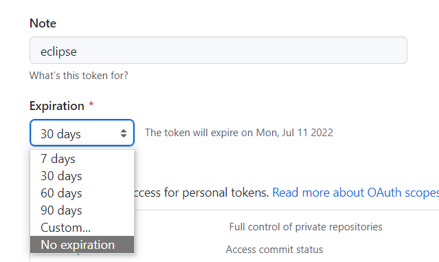 2021년 8월 21일부터 스프링, 이클립스 ,vscode와 깃허브를 연동해서 사용하려면 깃허브의 비밀번호가 아닌 토큰을 이용하여 로그인을 해야 인증이 가능하다.