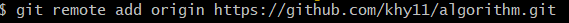 git remote add origin https://github.com/사용자아이디/algorithm.git