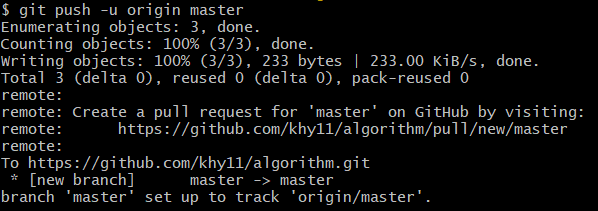 진짜 마지막 push해주는 명령어를 작성하면 커맨드에 모든게 업로드됐다는 문구가 뜬다.