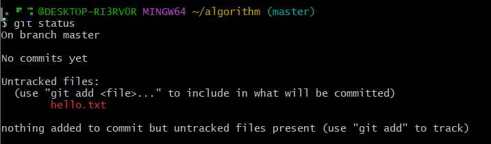 git init을 하면 C:\Users\유저명\algorithm 디렉토리에 .git이라는 폴더가 생기게 된다 (로컬저장소)