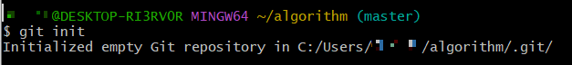 생성된 폴더 algorithm 디렉토리에서 git init 명령어를 실행한다