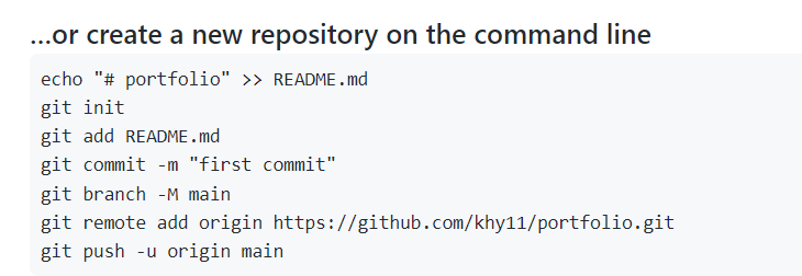 사실상 깃허브에서 제일 처음 레파지토리를 생성하면 나오는 문구를 순서대로 작성해도 된다