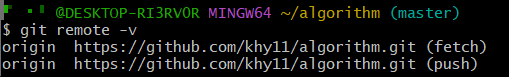 깃허브와 깃배쉬의 연결이 잘 됐는지 확인하는 명령어