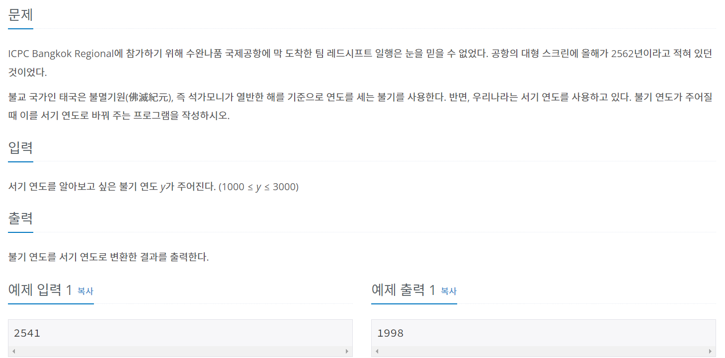 서기연도를 알아보고 싶은 불기연도 y : scanner를 통해 사용자로부터 연도를 입력받음 (2541년)