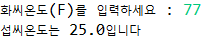 화씨온도 -> 섭씨온도 : C = 5/9 * (F-32)