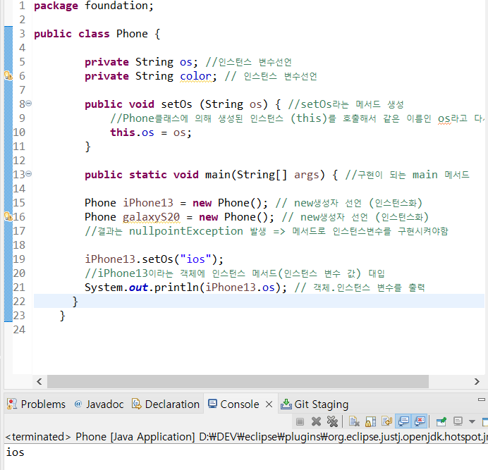 System.out.println(iPhone13.os); // 객체.인스턴스 변수를 출력