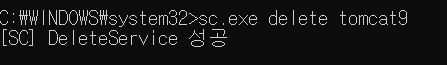 cmd 관리자모드 창을 열어서 sc.exe delete tomcat*(설치하려는 톰캣버전)을 입력해주면 해결이 된다.